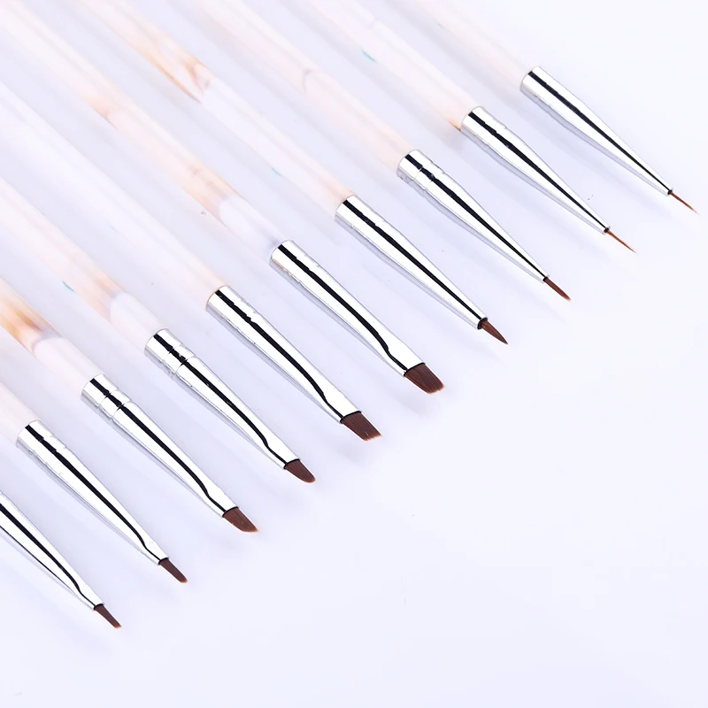 1 Pc UV Gel Liner Drawing Brush Painting Nail Liner Acrylic Pens Marble Handle Nail Art Pens Tools