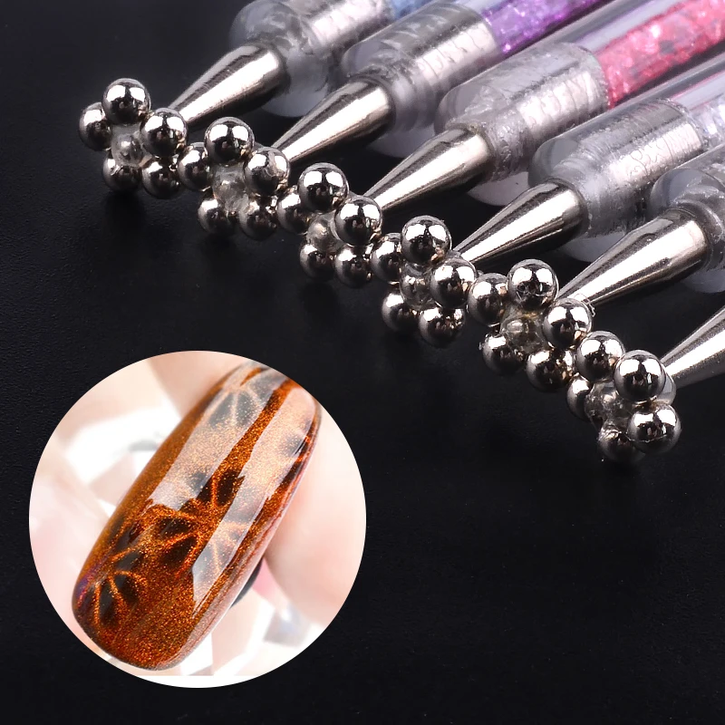 Nail Double End Brush Magnet Head Pen Flower for DIY Magic 3D Magnetic Cats Eyes UV Gel Polish Brus